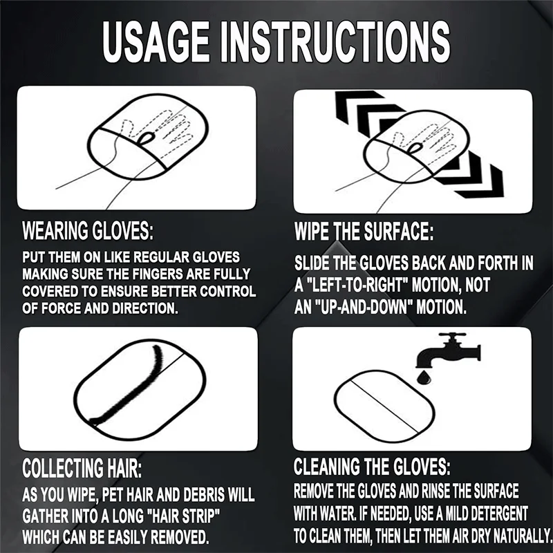 Wide Coverage, Fast Results: These pet hair remover gloves clean large areas swiftly—sofas, carpets. No more spot cleaning or tedious rolling; just slide for instant magic.